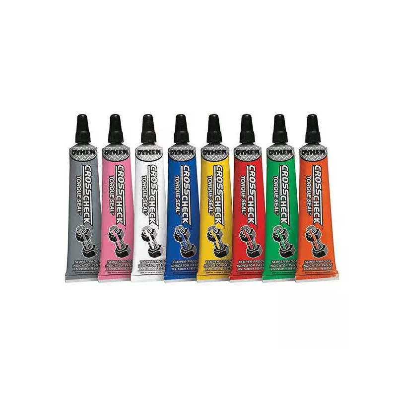 DYKEM® Cross Check™ provides a convenient visual method for identifying vibratory loosening or tampering in nuts, bolts, fasteners, and assemblies. Provides warranty protection against tampering. Marks will be easily broken if parts are tampered with or become loose. Highly visible marks. Orange, green, red, yellow, and blue fluoresce under black/UV light. Excellent adhesion to metal and other substrates.