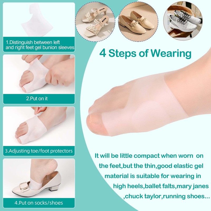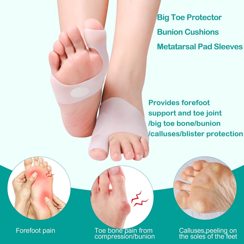 - Bunion Pain Refief & Big Toe Protect: Gel bunion sleeve with one big toe hole to protect big toe and side phalanx thickened silicone protective pad to cushion bunion pain.When wearing gel big toe guard sleeve,immediately feel the soft gel soothing forefoot and big toe bones, relieving pinching between the foot and shoes.