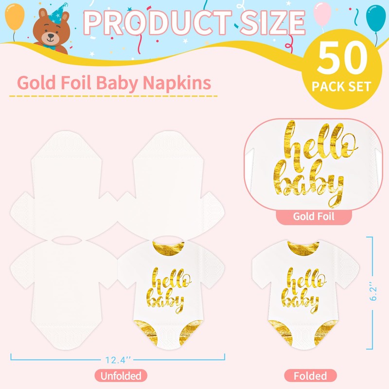 - đ¶ăBABY SHAPE DESIGNă: This Hello Baby party napkins set is all designed in cute BABY patterns. Decorating your party with these disposable napkins can make your party looks more elegant.