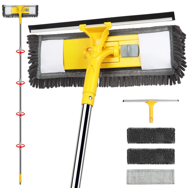 - Functional Tools: The 81" window cleaning kit is essential cleaning tools for wiping away water, lime scale, soap scum, and other dirt from surfaces. It is convenient to use the chenille or microfiber to clean windows, the rubber squeegee to wipe water. Equipped with longer poles, you can safely clean high windows without using ladders or stools