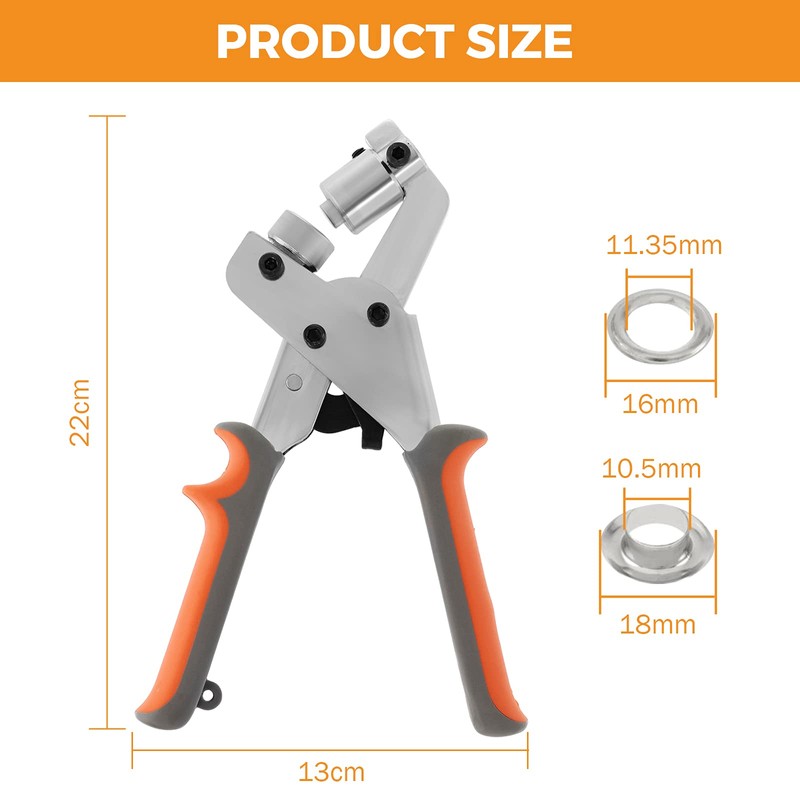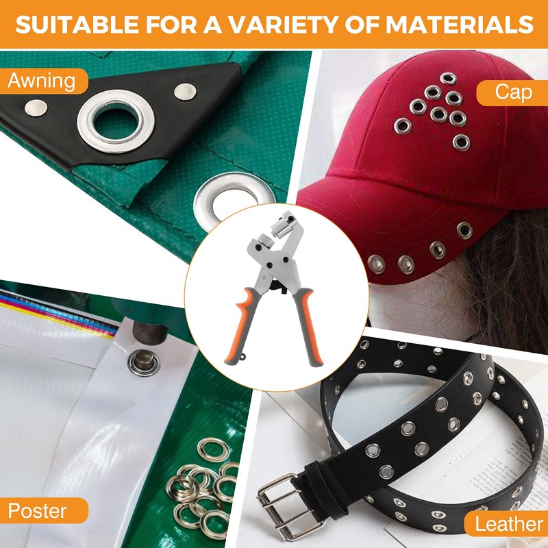 - 【EASY TO OPERATE】You can easily punch holes just with eye grommet pliers alone by yourself ,don't need to sew or crop before using punching machine grommet kits, which can be applied in leather, tents, awnings, canvas, tarps and PVC banners, tarpaulin, garments, bag and case etc.