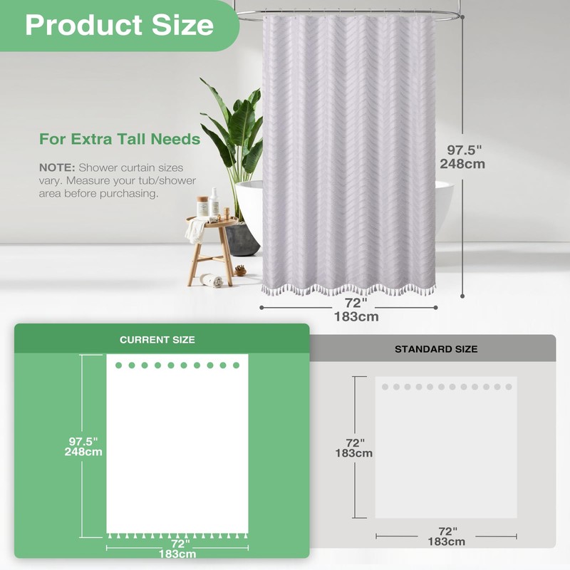 Dynamene Dynamene Extra Long Shower Curtains, 96 Inches Long Boho Tufted Chevron Striped Fabric Shower Curtains for Bathroom, Tall Minimalist Waterproof Cloth Shower Curtain Set with 12 Hook, Lavender, 72x96