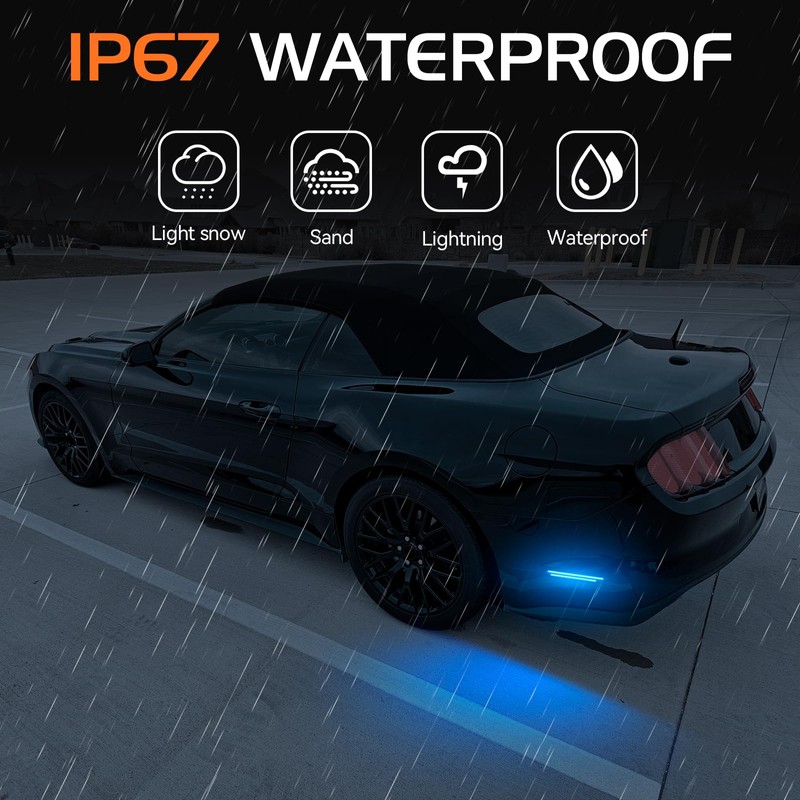 - ππππ πππππππ Each of sequential led side marker light for Ford Mustang 2015-2023 adopts with 60pcs 2835 high power LED chips, form a full super brightening strip of the LED light. Continue dynamic cycle blue scan lighting for few seconds and then switchback DRL, Makes your car different with others!