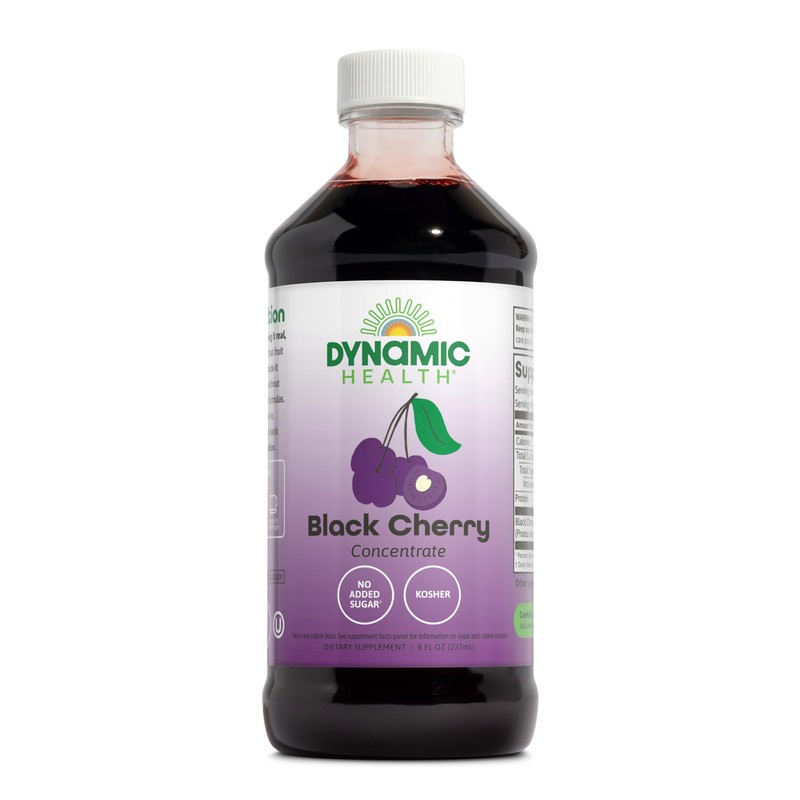 Dynamic Health Pure Black Cherry Unsweetened 100% Juice Concentrate, No Additives or Preservatives, Antioxidant, 8oz (Packaging Varies)