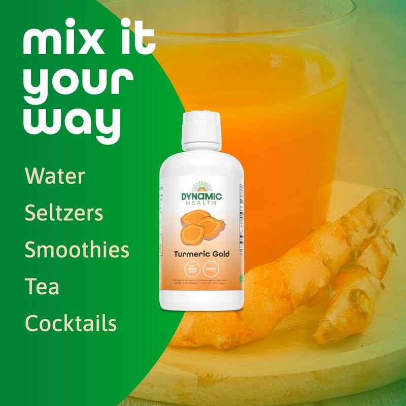 Dynamic Health Turmeric Gold, 100% Juice, Turmeric Supplement, No Additives, Joint Support, Antioxidant, Inflammation, Vegan, Gluten Free, Non-GMO, 32 Fl Oz