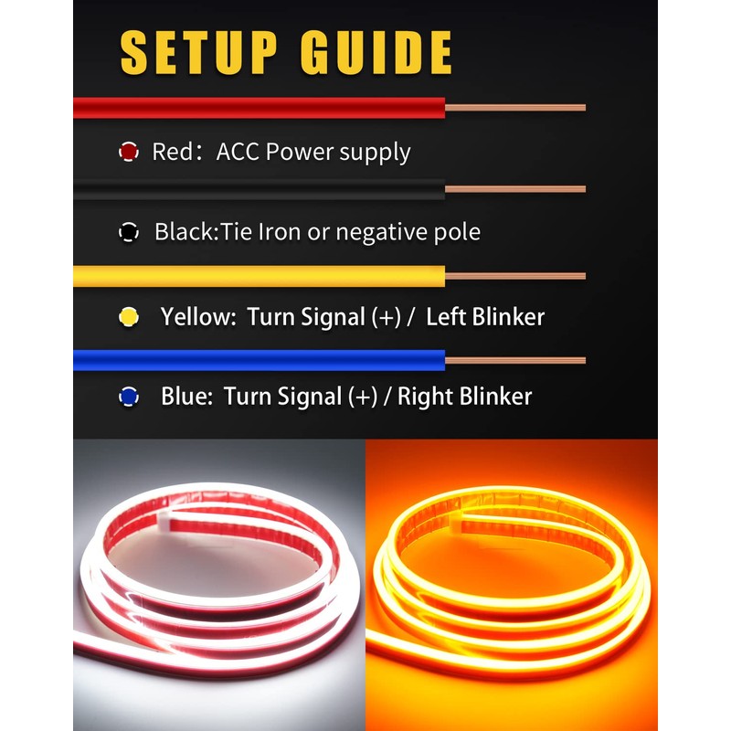 - 🚙【Dual Colors+Turn Signal Function】As running light,the hood light strip is White when driving,it is Sequential flowing yellow While turning Right/Left.It Synchronize with turn signal lamps.It can work as daytime running light,turn signal light,decorative hood /grille lights for cars,Suv,Trucks,Pickup,RV,Bus etc.