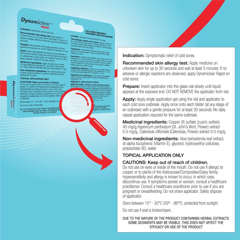 • ONE & DONE: Dynamiclear Rapid is a single-application topical solution for cold sores & blisters caused by herpes viruses (Also known as Herpes Labialis).
