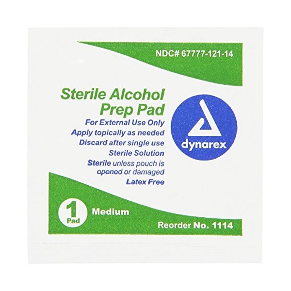 Dynarex 1114 Sterile Alcohol Prep Pad, Medium (Pack of 100)