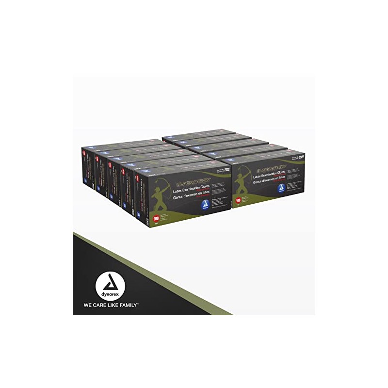 Dynarex Black Arrow Disposable Latex Exam Gloves, Powder-Free, Used in Healthcare and Professional Settings, Black, Medium, 1 Case, 10 Boxes of 100 Gloves