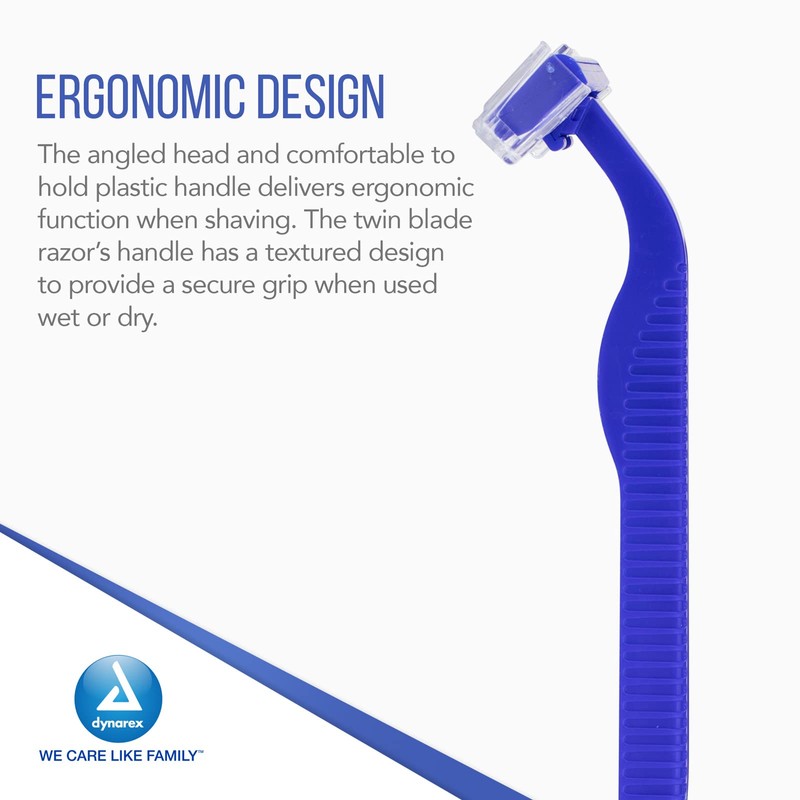 Dynarex DynaCare Twin Blade Razors, Disposable Unisex Razor with Two Blades Provides Smooth, Close Shave, for Prior to Procedures or Tattoos, Blue, 6 Boxes - 50 Razors per Box