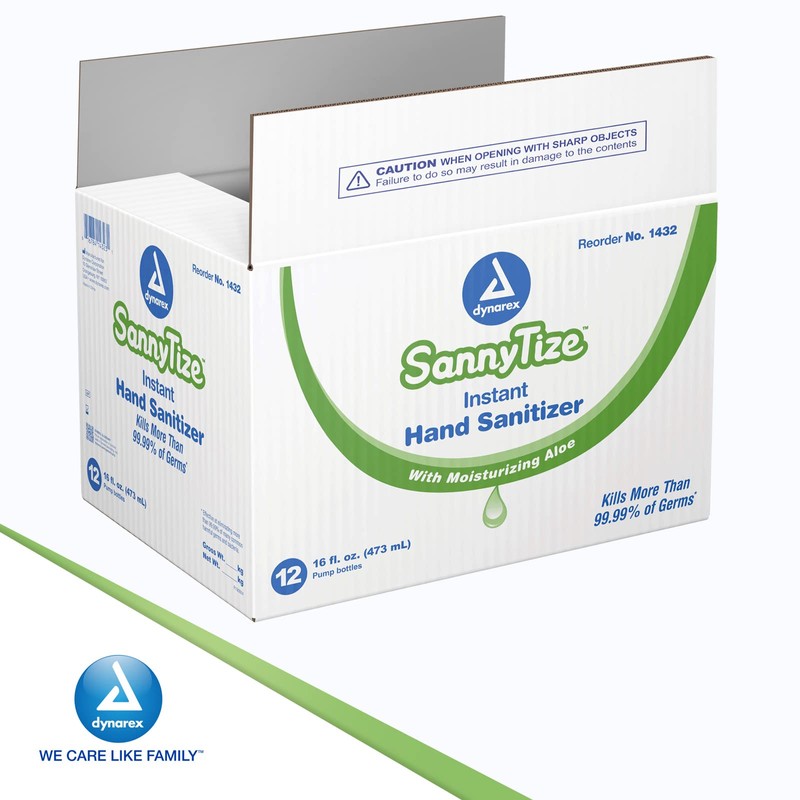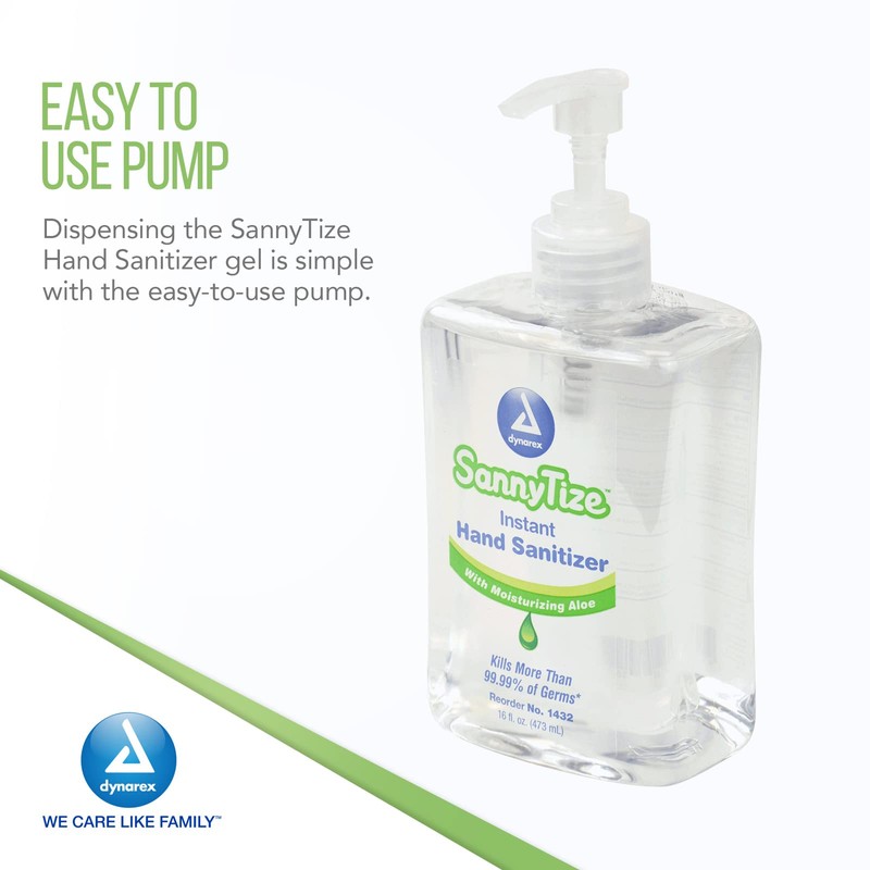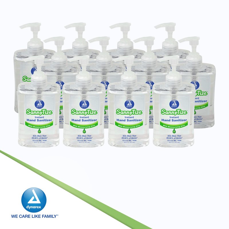 Dynarex SannyTize Hand Sanitizer Gel – 16 oz. Square Bottle w/Pump, Infused with Aloe Vera & Eliminates 99% of Common Germs, Clear, 1 Box of 12 SannyTize Hand Sanitizer 16 oz. Square Bottles w/Pump