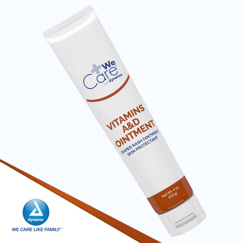 Dynarex Vitamins A & D Ointment, Ointment with Vitamin A and Vitamin D Skin Protectant, for Diaper Rash and Discomfort, White, 1 - 4 oz. Tube