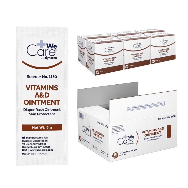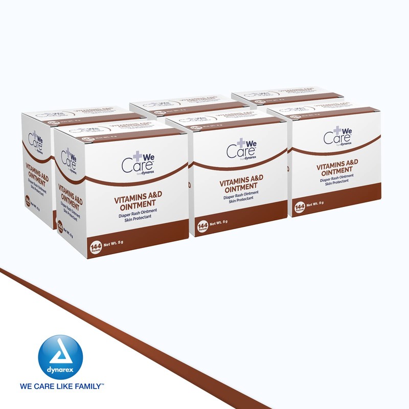 Dynarex Vitamins A & D Ointment, Ointment with Vitamin A and Vitamin D Helps Prevent & Treat Skin Irritation, Diaper Rash, White, 6 Boxes of 144, 5g Packets