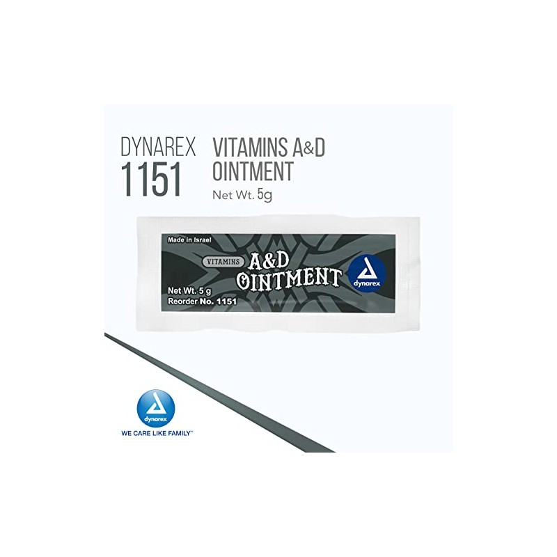 Dynarex Vitamins A&D Ointment Without Lanolin - Vitamin A and D Ointment Protectant for Minor Cuts, Burns, Diaper Rash & Dry Skin - 1 Box - 144 Packets/Box - 5g Packets