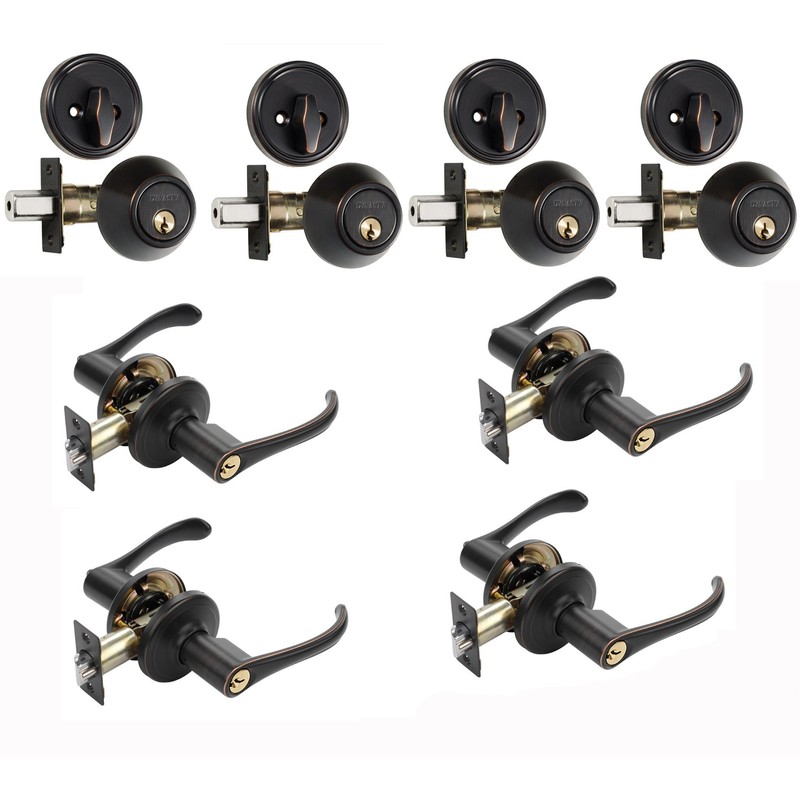 Dynasty Hardware CP-VAI-12P, Vail Front Door Entry Lever Lockset and Single Cylinder Deadbolt Combination Set, Aged Oil Rubbed Bronze (4 Pack) Keyed A