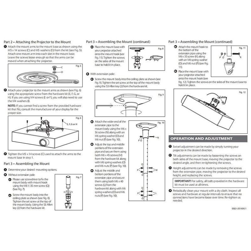 - Easy to Install: Pre-assembled, this projection mount can be set up in a few steps with quick release hooks that attach and detach by tightening and loosening mounting bolts. Warm Tip: To prevent the mount from shaking,please tighten the screws marked in the picture above.
