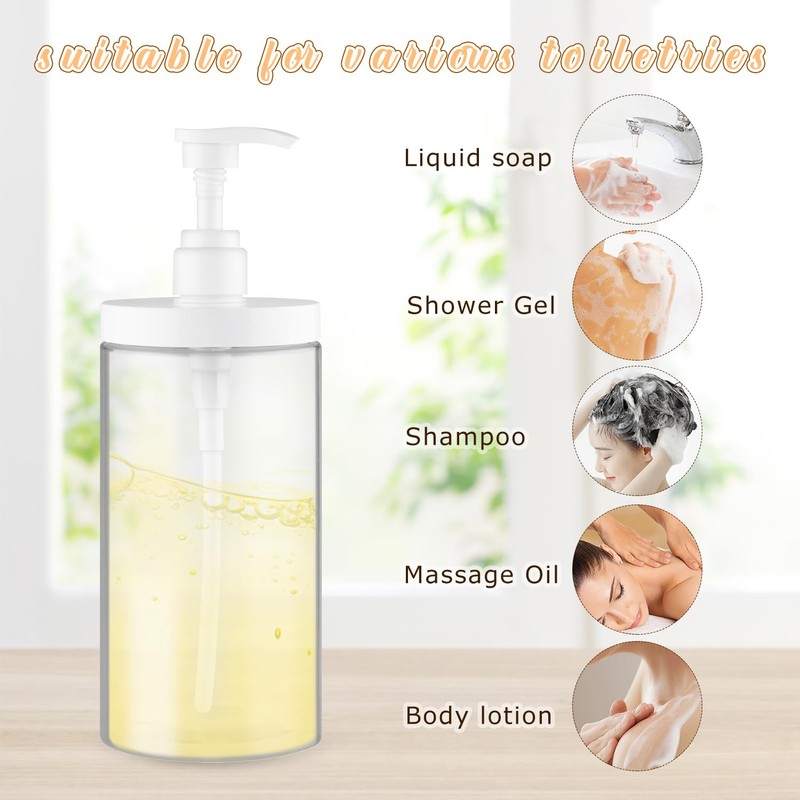 - Versatile - Removable pump head and wide opening make it easy to fill,very suitable for storing lotion,soaps,shampoos,shower gels,hair conditioners,and detergents.