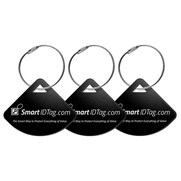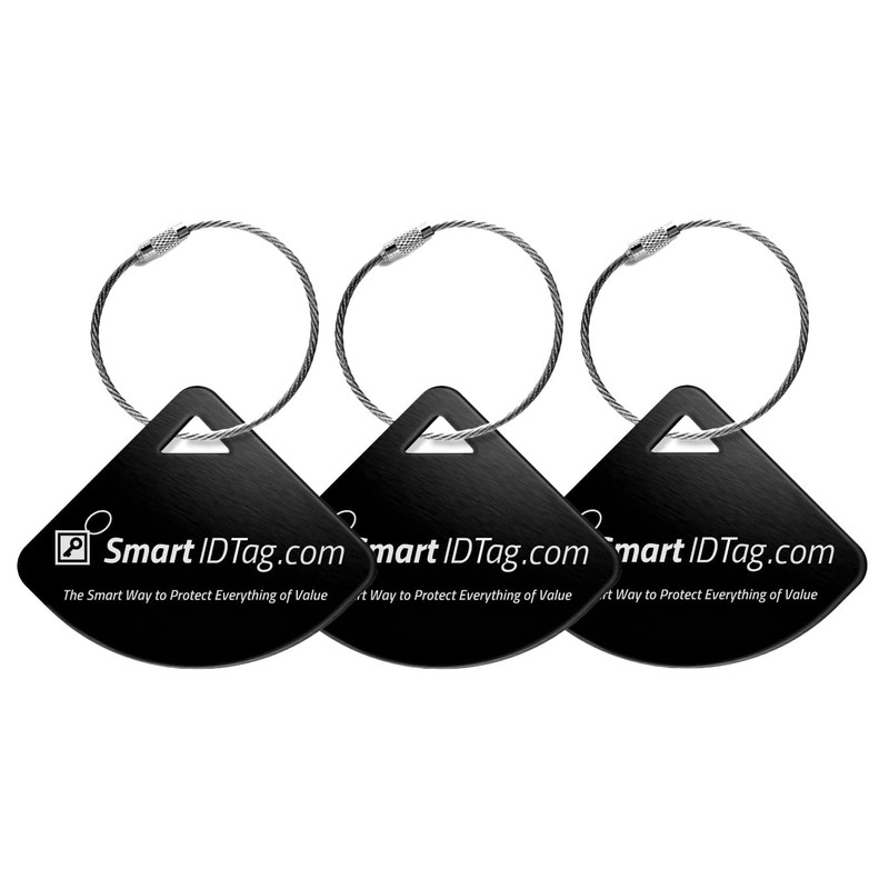 Dynotag® Express Series Solid Metal Web Enabled Smart Bag Tag ID + Steel Loop, Anodized Aluminum with DynoIQ™ & Lifetime Recovery Service (Midnight Black)