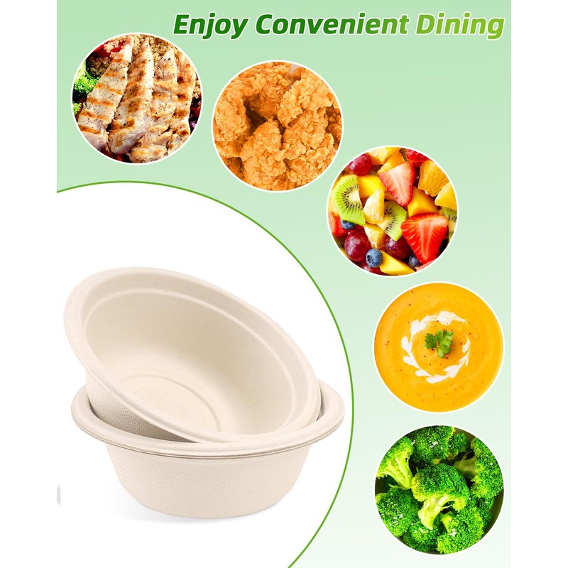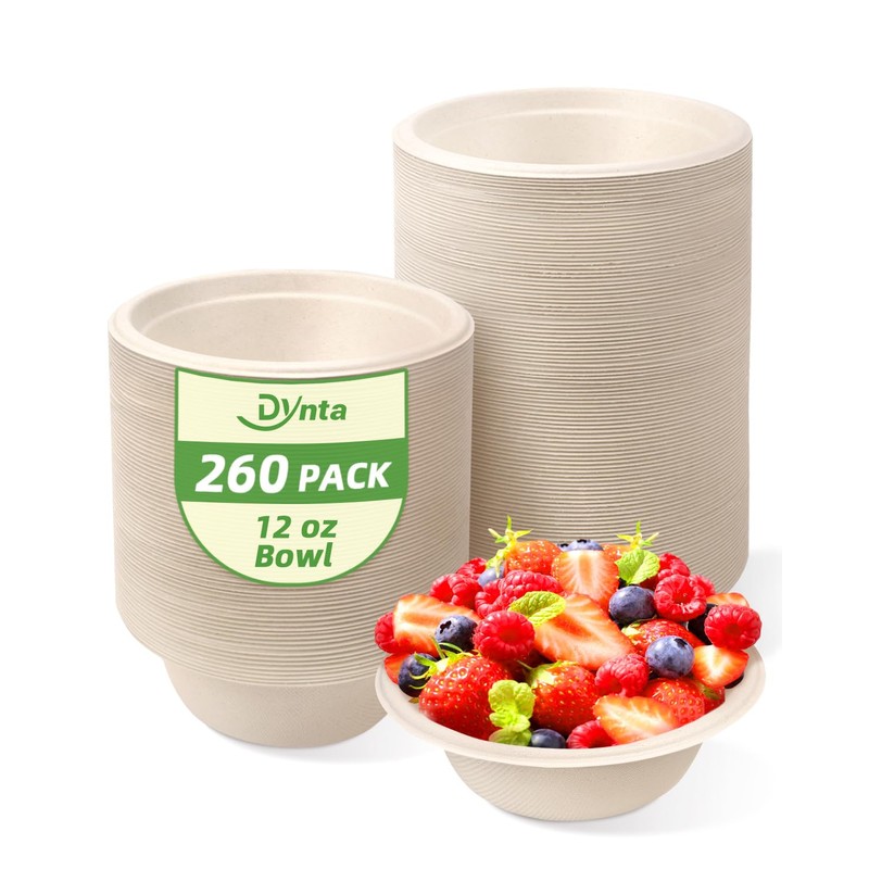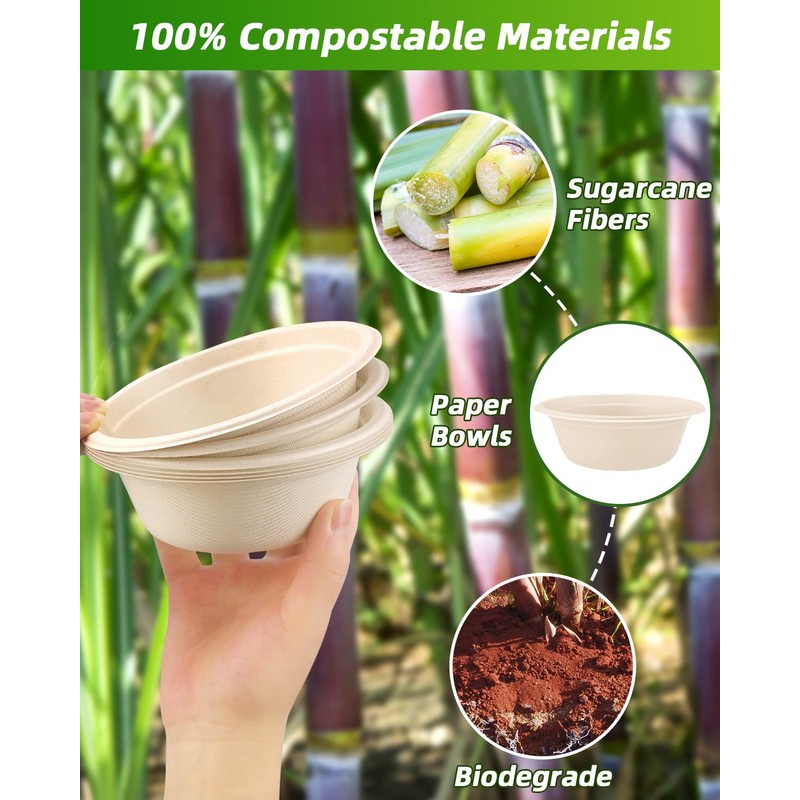 - Eco-Friendly Materials: Our 260 pack 12oz paper bowls are made of 100% sugarcane bagasse and bamboo, which can naturally degrade and do not produce harmful gases or microplastics. Renewable and sustainable are our common goals