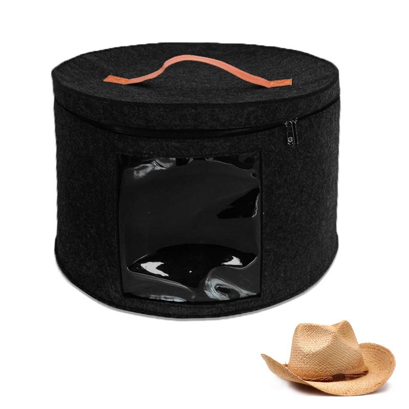 DYOUen Hat Boxes Hat Storage Box Felt Round Hat Box Foldable with Carry Handle and Clear Window for Wardrobe Organization, Travel,Dustproof (black)