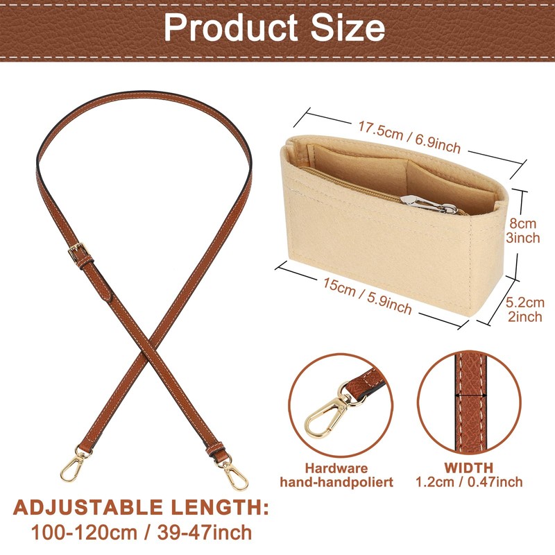 Dyserbuy Purse Straps for Women Crossbody Bag Replacement, Leather Strap for Mini Bag Strap Compatible, Multi-Pocket Felt Handbag Organizer Accessories Set