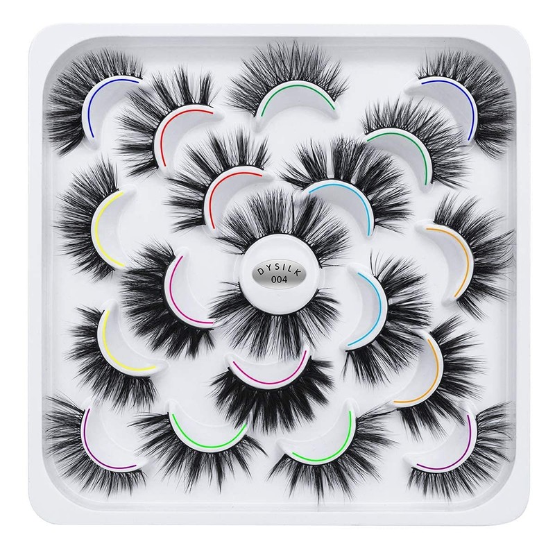 Dysilk 10 Pairs of 6D Eyelashes False Fluffy Wispy, Long Thick, Handmade, Reusable, Dramatic, No Glue, 10 Styles, Mixed