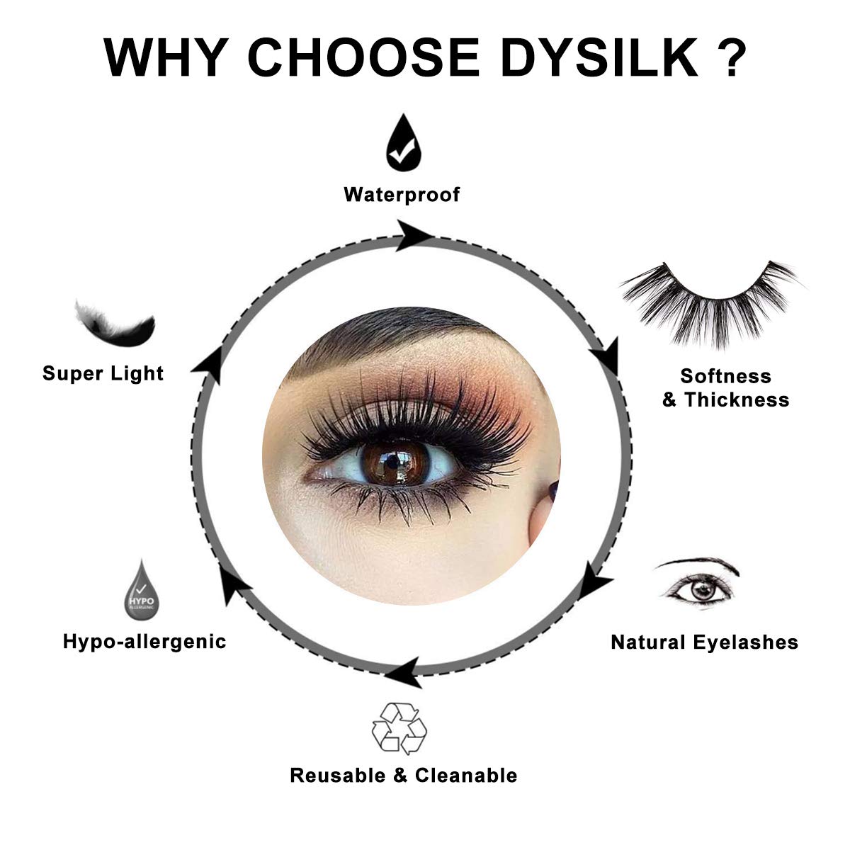 - High Quality Durable Lashes: DYSILK offers high quality, handmade false lashes that blend with natural lashes really well. Eyelashes made of synthetic fibers, which are known for softness and durability, look like mink lashes with perfect volume, fluffy and give lots of dimension but lashes still natural look, lash band is flexible so bend well and stay on. Our false eyelashes are very fashionable, delicate, vivid and shiny, they accentuate our natural lashes without making too dramatic.