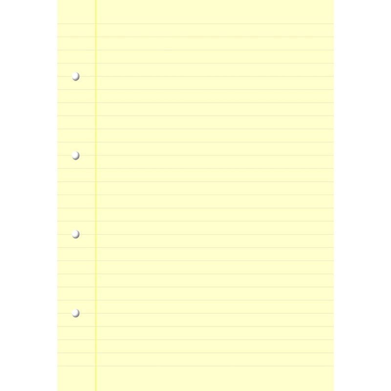- QUANTITY, SIZE AND FEATURES: Format: DIN A4 Thickness: 80gsm Pack size: 50 sheets printed on both sides - 100 feint ruled pages, Yellow coloured high quality paper 10mm lines with margin 4 hole punched for easy filing