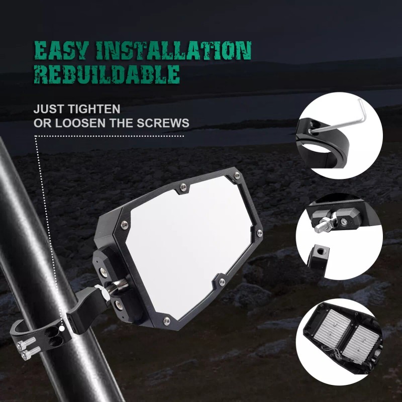 - Type: UTV Rear View Side Mirrors w/ LED Light