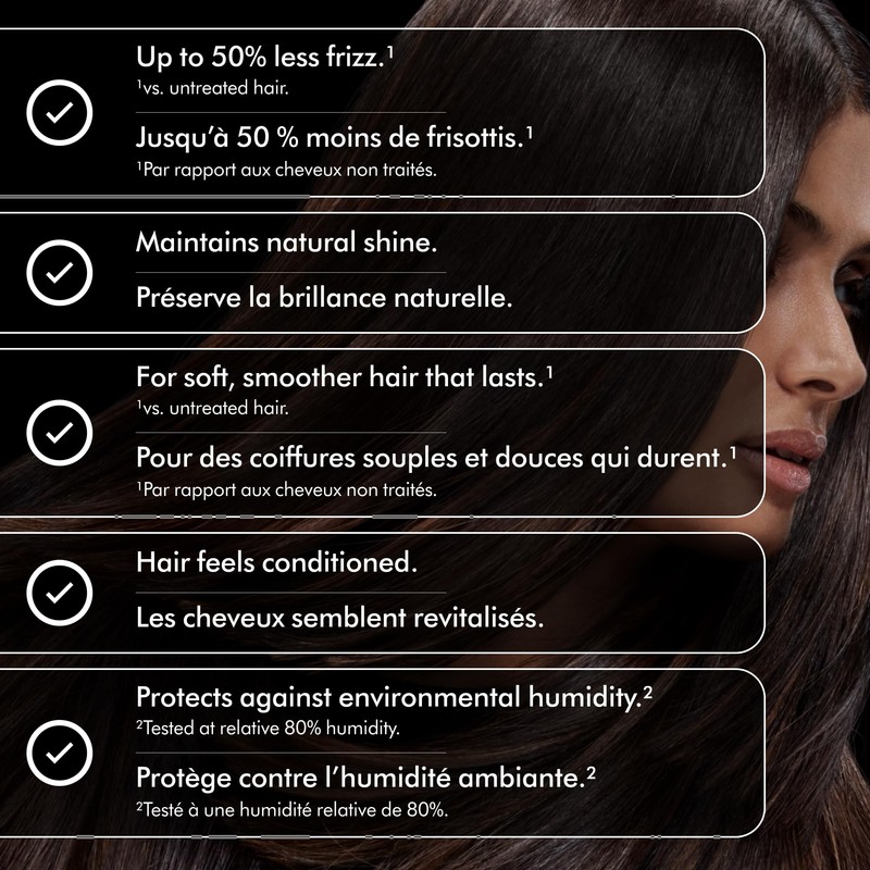 - Chitosan, derived from oyster mushrooms, creates flexible bonds that support the hair, strand by strand - protecting your styles from frizz, even in high humidity.**
