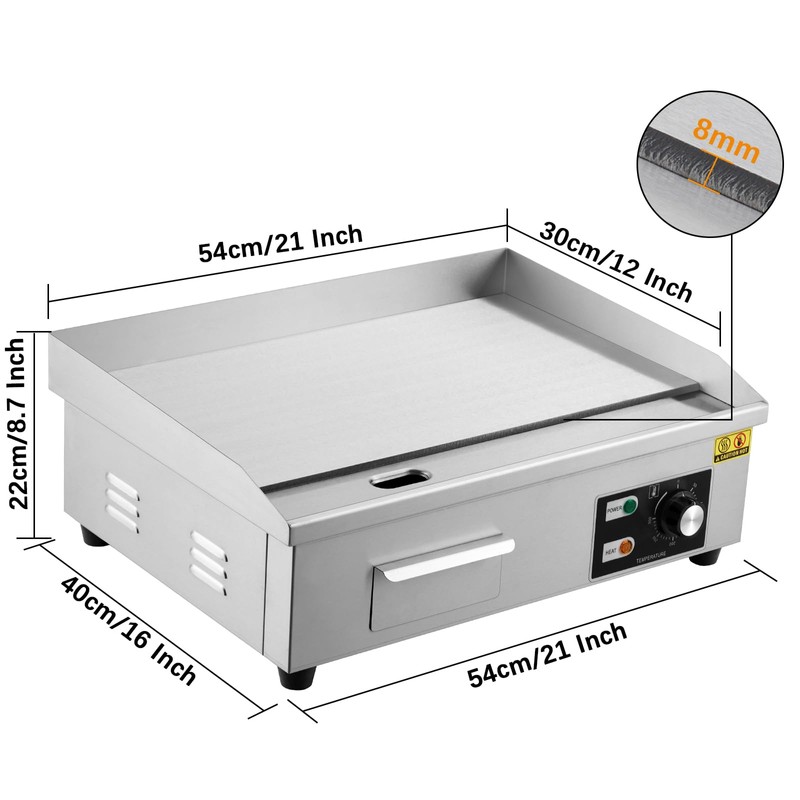 - Generous Space: Measuring 21x12 inches, this commercial electric griddle offers a spacious cooking area, perfect for preparing meals for family or guests. Its ample surface allows for cooking multiple items, streamlining your process