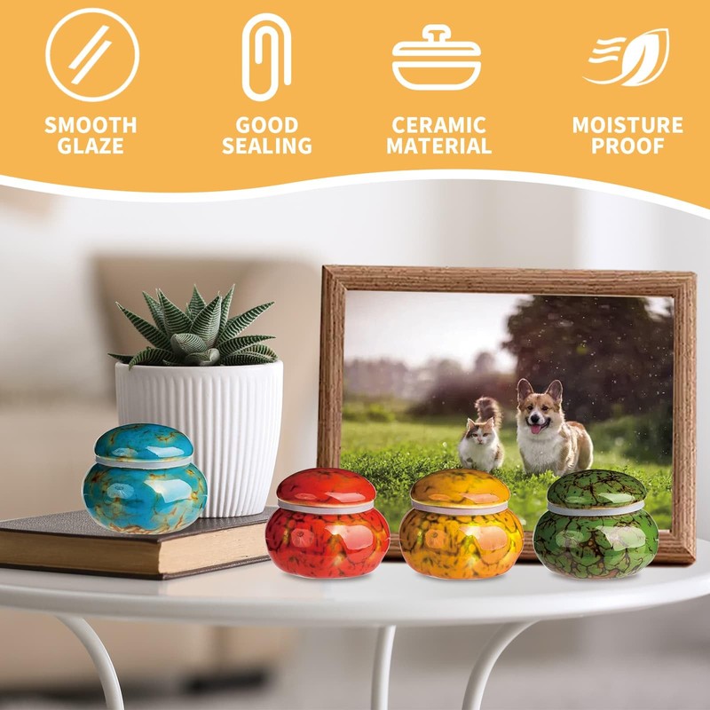 DYUEE Small Urn for Human Ashes Or Pet 4 PCS, 1.7'' Mini keepsake urn n for Family & Loved Ones Burial Ash Storage(Blue,Green,Red, Yellow)
