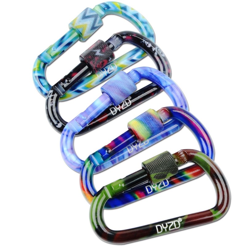 DYZD Gear Aluminum Alloy D Shape Buckles D Ring Keychains Screw Locking Spring Clip Hook Keyring Clip Hook(Style 3, 5 PCS)
