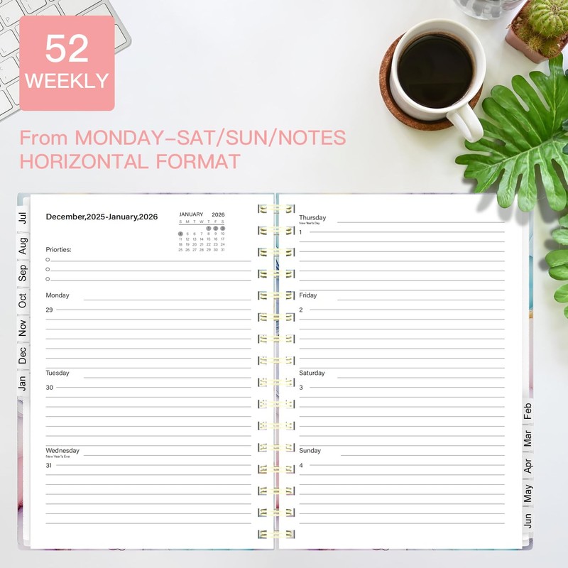 Dzhzal 2025-2026 Weekly and Monthly Academic Year Planner Calendar, July 2025 - June 2026, 8.5" x 5.8", Hard Cover, Wirebound, Laminated Tabs with Elastic Band