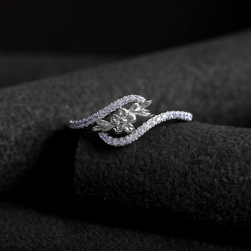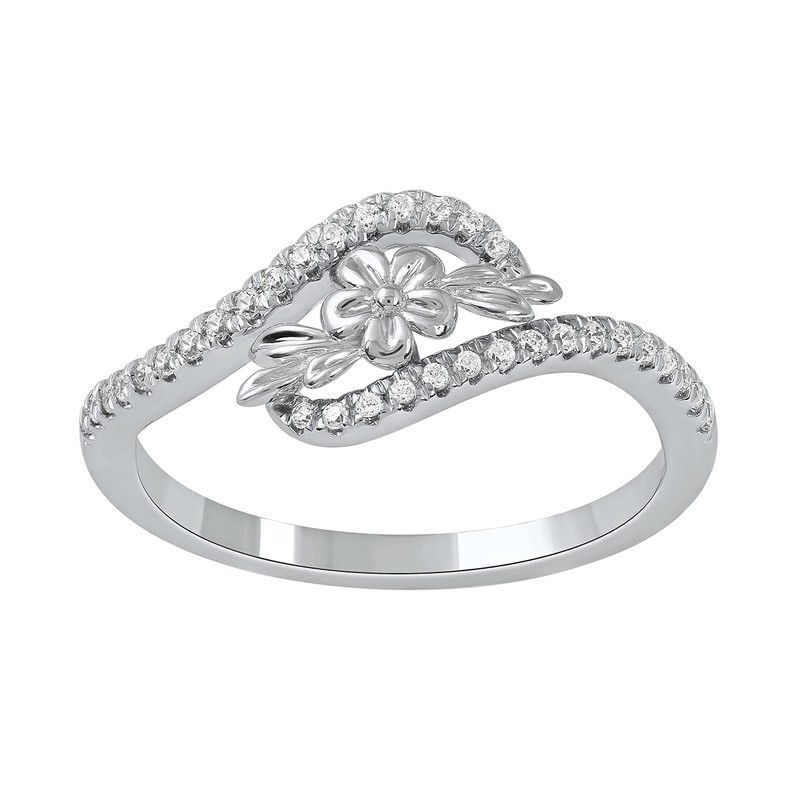 - Design: Delicate, sleek and sparkling. Beautiful floral design nestled in bypassing diamond accent shank. Suitable for everyday wear.