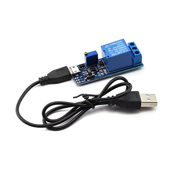 DZS Elec 5V-30V 1 Channel Wilde Voltage 0-24s Adjustable Delay Internal/External Trigger Relay Board with Timer Delay Conduction Delay Circuit Switch with USB to Micro USB Power Line