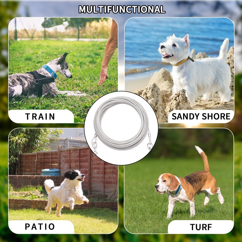 - RUST PREVENTION DESIGN: Dog tie outs equipped with crimp and swivel clip covers, for large and small outdoor dog leash,these dog tie out cable are built for enhanced strength and protection against rust