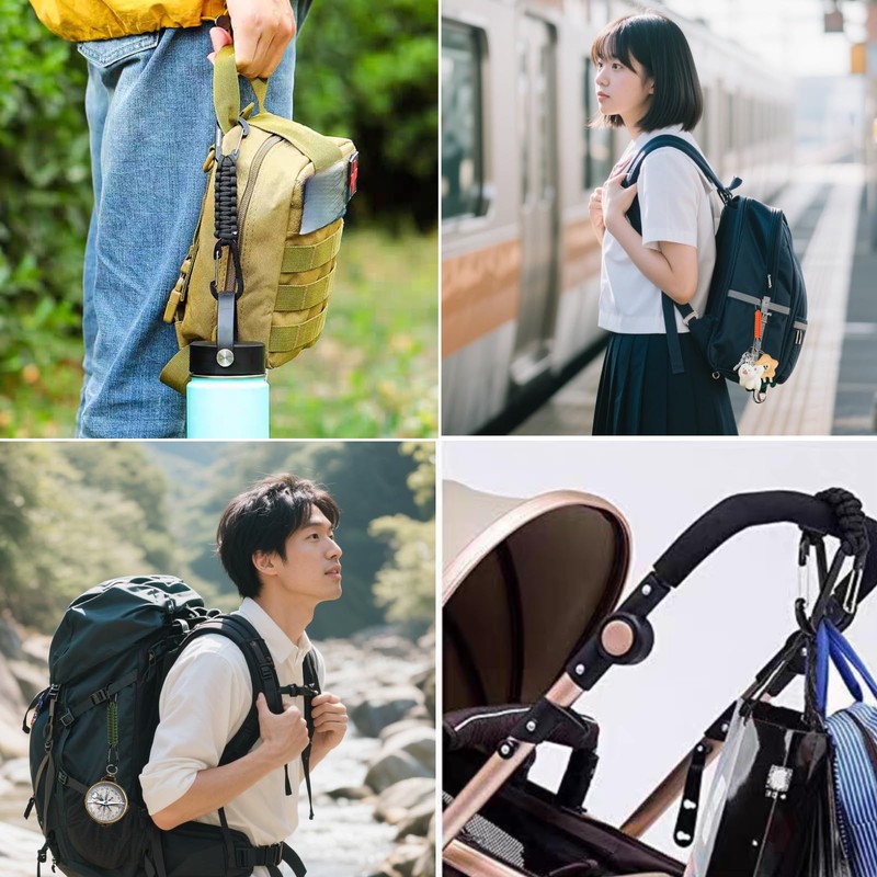 - Main Uses: For hanging key chains, key chains, small items, Outdoors: hanging hooks, backpacks, water bottles, kettles, lanterns, securing bicycles and bike side bags, disaster prevention: Unravel paracord and use it as an emergency rope. Target Users: Camper/ Disaster Preparedness Conscious/ Multifunctional Goods Enthusiast/ People who like to organize their daily accessories. Cannot be used for life-supporting applications (such as climbing)
