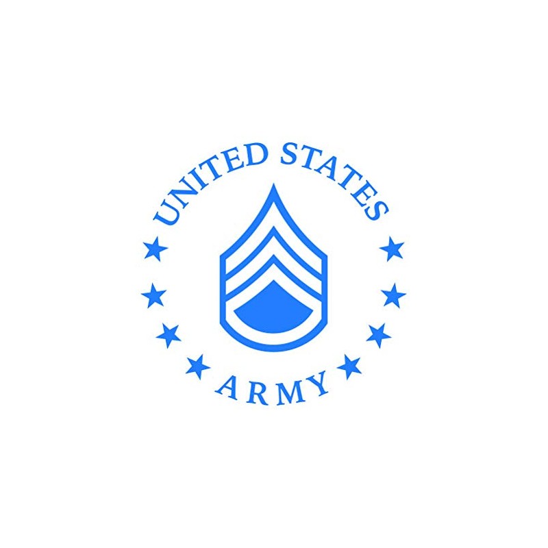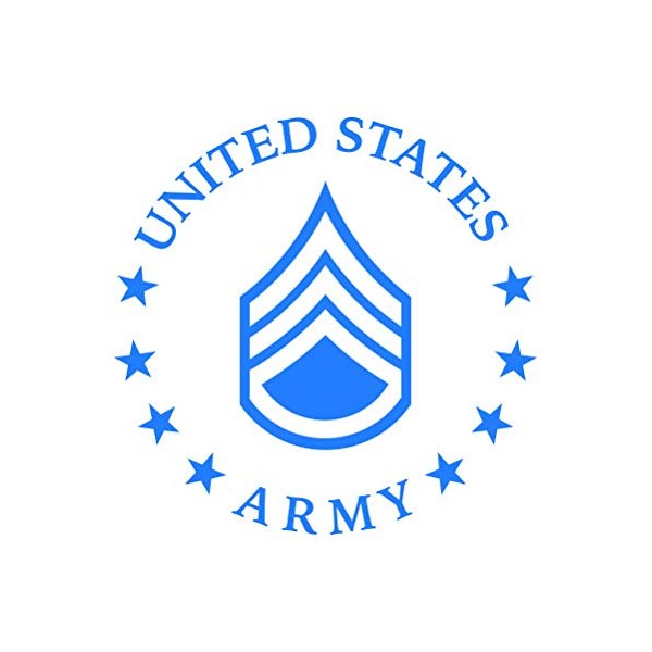 E-6 Staff Sergeant US Army Rank Sticker - Decal - Die Cut - SSG OR-6 E6 - Blue 5.50" x 5.43"