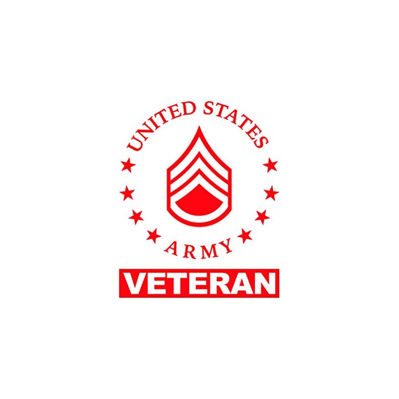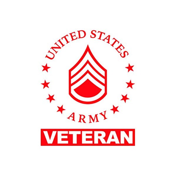 E-6 Staff Sergeant Veteran US Army Rank Sticker - Decal - Die Cut - SSG OR-6 E6 - Red 4.00" x 4.92"