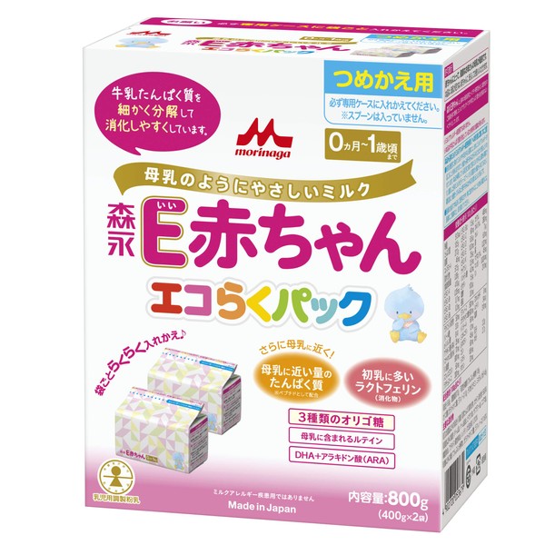 森永 E赤ちゃん エコらくパック つめかえ用 800g(400g×2袋) [0ヶ月~1歳 入れかえタイプ 粉ミルク ラクトフェリン 3種類のオリゴ糖]