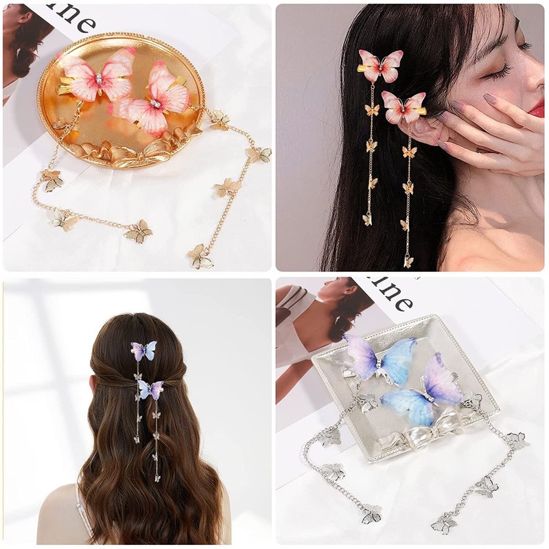 • 【Package Include】1 pair(2 pcs) tassel butterfly hair clip.