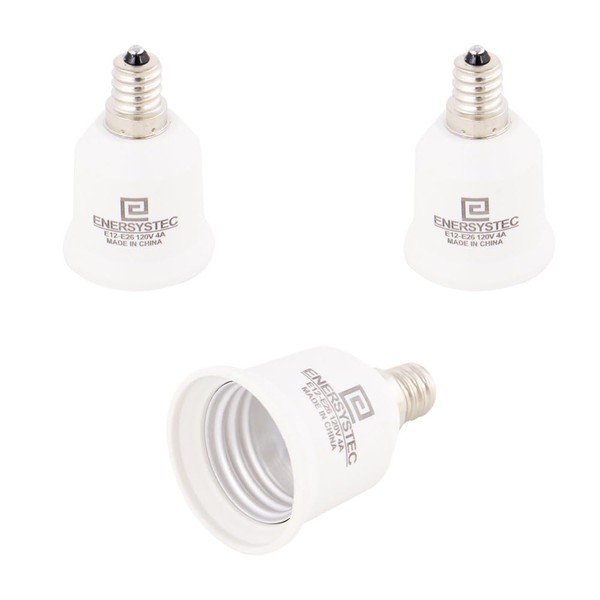 E ENERSYSTEC E12 to E26 Converter E12 Chandelier Light Socket to Medium E26 E27 Adapter, Candelabra E12 to Screw in E26 Socket Converter Bulb Base Adapter, E12-E26 Regular LED Light Bulb Base, 3 Pack