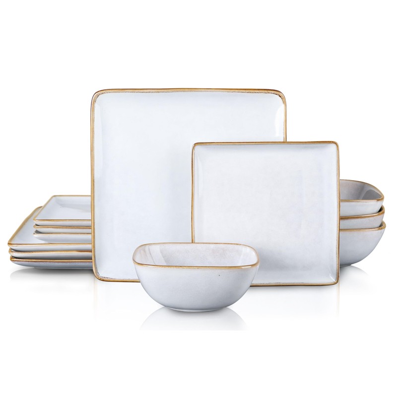 - SQUARE DINNERWARE SETS FOR 4 - 4 each of 9.76 Inch Dinner Plate, 7.2 Inch Salad Plate and 6 Inch(23oz) Cereal Bowl, Soft square design create a interesting and distinctive feel to dress up your table, A great combination for family daily use and classy enough for spacial occasions like wedding/Housewarming/Christmas, Perfect combination of style and functionality