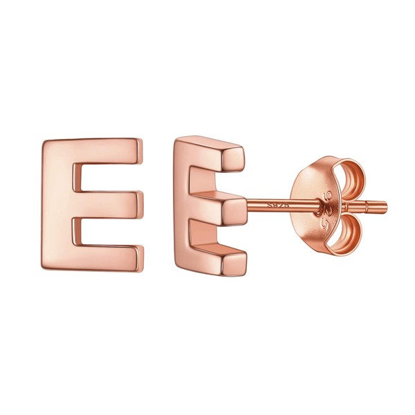 E Initial Earrings For Women Rose Gold Plated Stud Earrings Sterling Silver