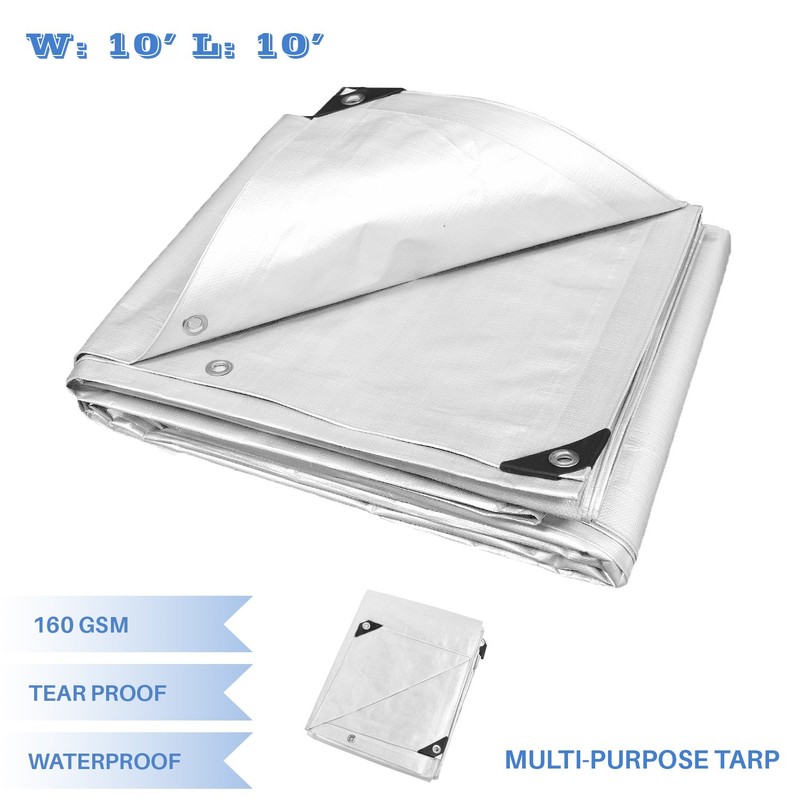 E&K Sunrise 10' x 10' Finished Size General Multi-Purpose Tarpaulin 10-mil Poly Tarp - White - Set of 4