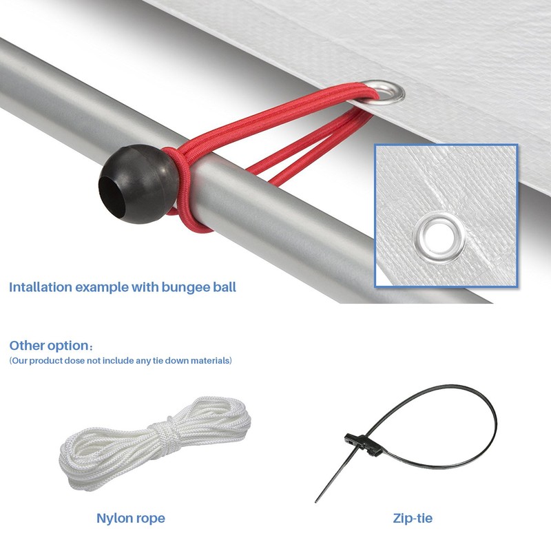 * Mil is the thickness of the material, one mil=0.0254mm. * Reinforced, Reversible. * All edges are heat-sealed and reinforced with polyethylene rope. Our tarps are made from a tight polyethylene weave which provides super durability. * All full sizes, no "cut sizes". * Tarps can be used as protection for boats, cars or motor vehicles. Camping tarpaulin provides shelter for these elements, ie., wind, rain or sunlight for campers, such as an emergency roof patch material for homeowners; as a temporary pickup truck bed cover, and for a ground or drop sheet. * Warning: Flammable. This product will ignite and burn if brought into contact with an open flame.