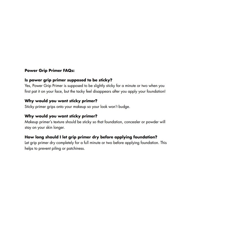 - FOR ALL SKIN TYPES: Our Power Grip Primer's formula goes on clear with a translucent finish for all skin types and skin tones. It is also non-comedogenic (does not clog pores.)