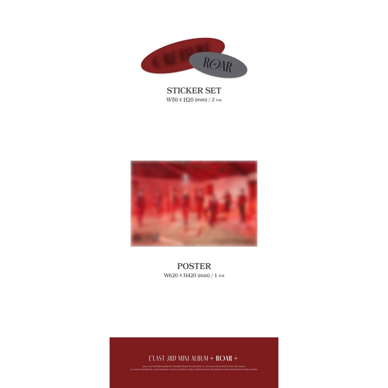 E'last Roar 3rd Mini Album RED Version CD+96p PhotoBook+2p PhotoCard+1p Pet PhotoCard+1ea Accordion Postcard+1ea Hologram Postcard+1ea 4Cut Bookmark+2ea Sticker Set+Tracking Sealed