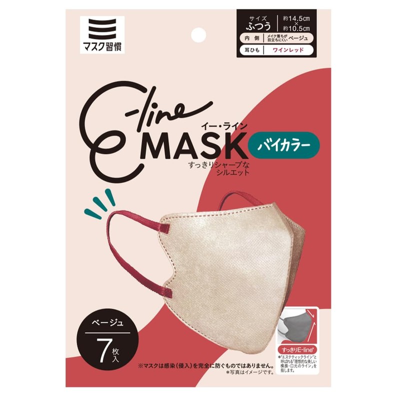 マスク習慣 E-lineマスクふつう ベージュ×ワインレッド 7枚×5袋